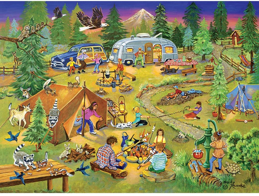 Bits and Pieces – 1000 Piece Jigsaw Puzzle for Adults – Camping with Grandma and Gramps – 1000 pc Americana Scene Jigsaw by Artist Sandy Rusinko