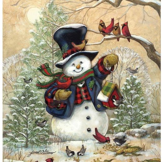 Bits and Pieces – 300 Large Piece Jigsaw Puzzle for Adults – Winter Friends – Snowman Puzzle – by Artist Janet Stever – 300 pc Jigsaw