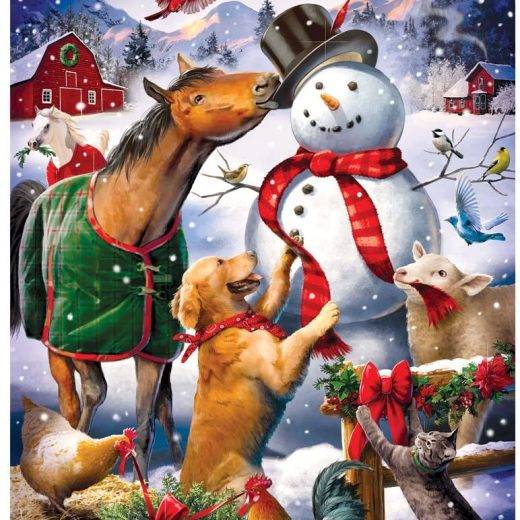 Bits and Pieces – 500 Piece Jigsaw Puzzle for Adults – Christmas Barn Snowman – 500 pc Animal Winter Scene Jigsaw by Artist Larry Jones