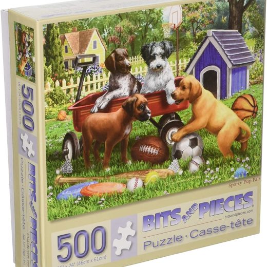 Bits and Pieces – 500 Piece Jigsaw Puzzle for Adults – Sporty Pup Pals – 500 pc Puppies Playing Sports Jigsaw by Artist Liz Goodrick-Dillon