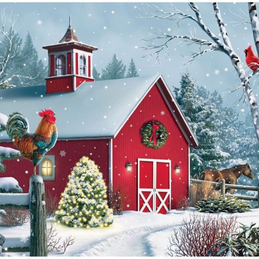 Bits and Pieces – 500 Piece Jigsaw Puzzle for Adults – Winter Barn II – 500 pc Christmas Holiday Horse Jigsaw by Artist Alan Giana