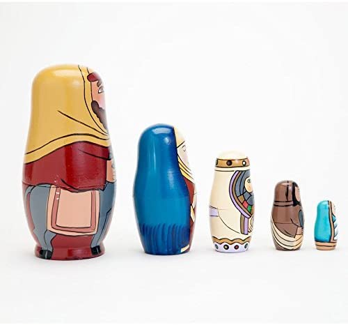 Bits and Pieces – 5pc Nesting Doll Holy Family -The Nativity Family Hand Painted Hand Made Wooden Nesting Dolls Matryoshka Nativity Figurines – Set of 5 Dolls from 5.5