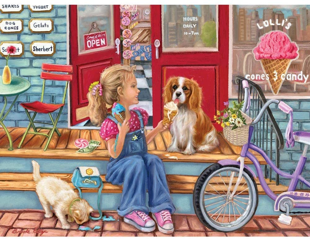 Bits and Pieces – Payday Cones 500 Piece Jigsaw Puzzles for Adults – Puzzle Measures 18 Inch x 24 inch – 500 pc Outdoor Summer Time Girl Dog Ice Cream Bike Shop Cat Jigsaws by Artist Brooke Faulder