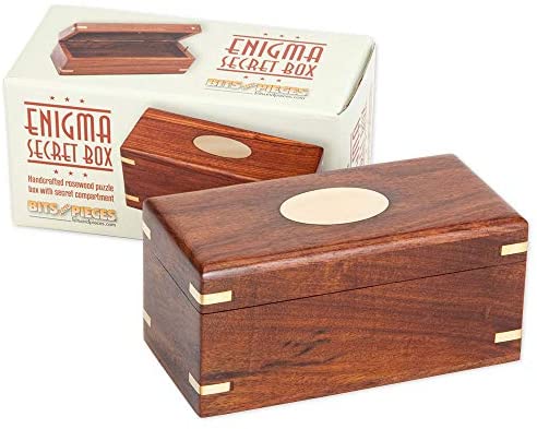 Unlock the mystery to our Secret Engima brain teaser puzzle box Great for placing a gift inside – they will have to solve the puzzle to get the gift! Handcrafted rosewood puzzle box Item measures 2-1/2 x 5-3/4 x 2-3/4 Recommended Age Range 13 Years & up Store your most treasured keepsakes in the secret compartment of this handcrafted rosewood puzzle box. Once you have unlocked the mystery of the box, do not give anyone else the key to opening it!