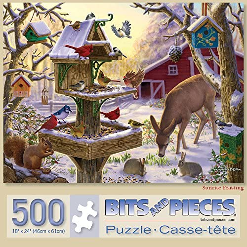Bits and Pieces – Value Set of Two 500 Piece Jigsaw Puzzle for Adults – Winter Build Snowman, Sunrise Feast – 500 pc Jigsaw by Artist Liz Goodrick Dillon