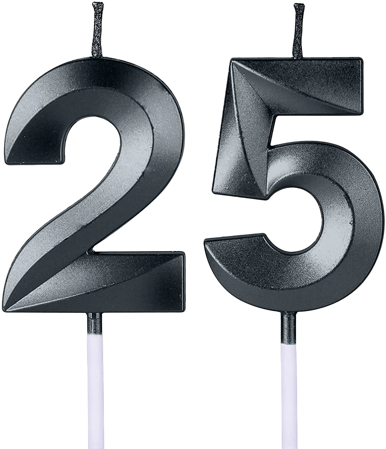 Black 25th & 52nd Birthday Candles for Cakes, Number 25 52 Glitter Candle Cake Topper for Party Anniversary Wedding Celebration Decoration