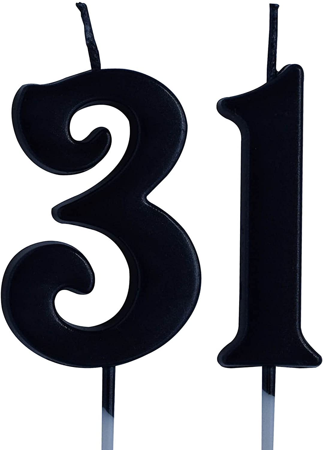 Black 31st Birthday Candle, Number 31 Years Old Candles Cake Topper, Woman Or Man Party Decorations, Supplies