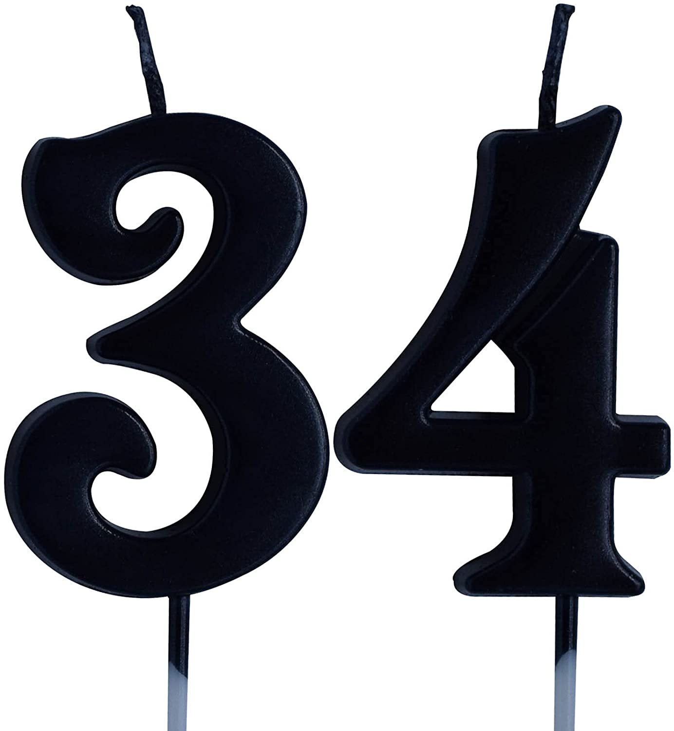 Black 34th Birthday Candle, Number 34 Years Old Candles Cake Topper, Woman Or Man Party Decorations, Supplies