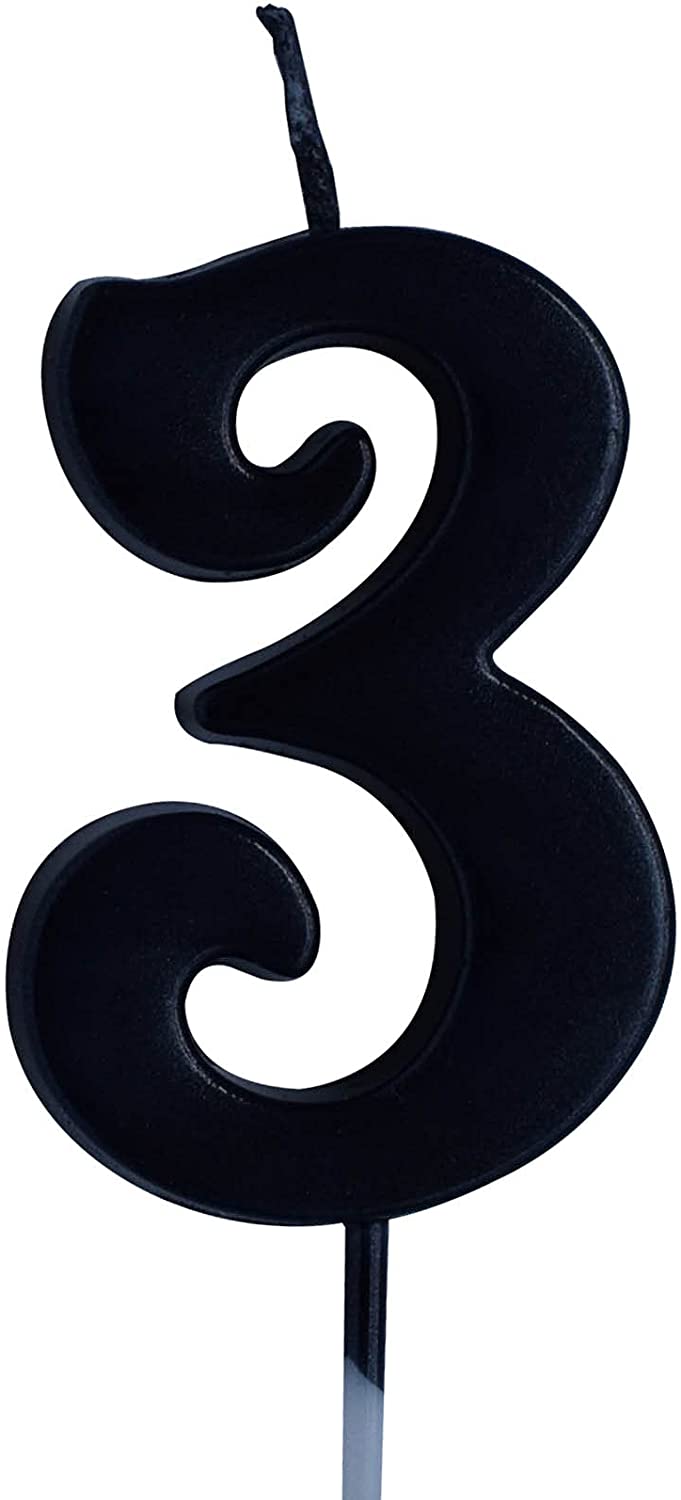 Black 3rd Birthday Candle, Number 3 Years Old Candles Cake Topper, Boy Or Girl Party Decorations, Supplies