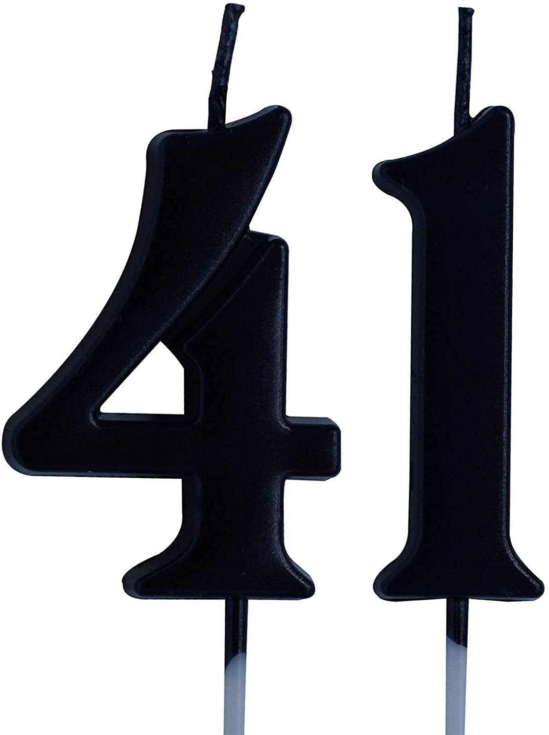 Black 41st Birthday Candle, Number 41 Years Old Candles Cake Topper, Woman Or Man Party Decorations, Supplies