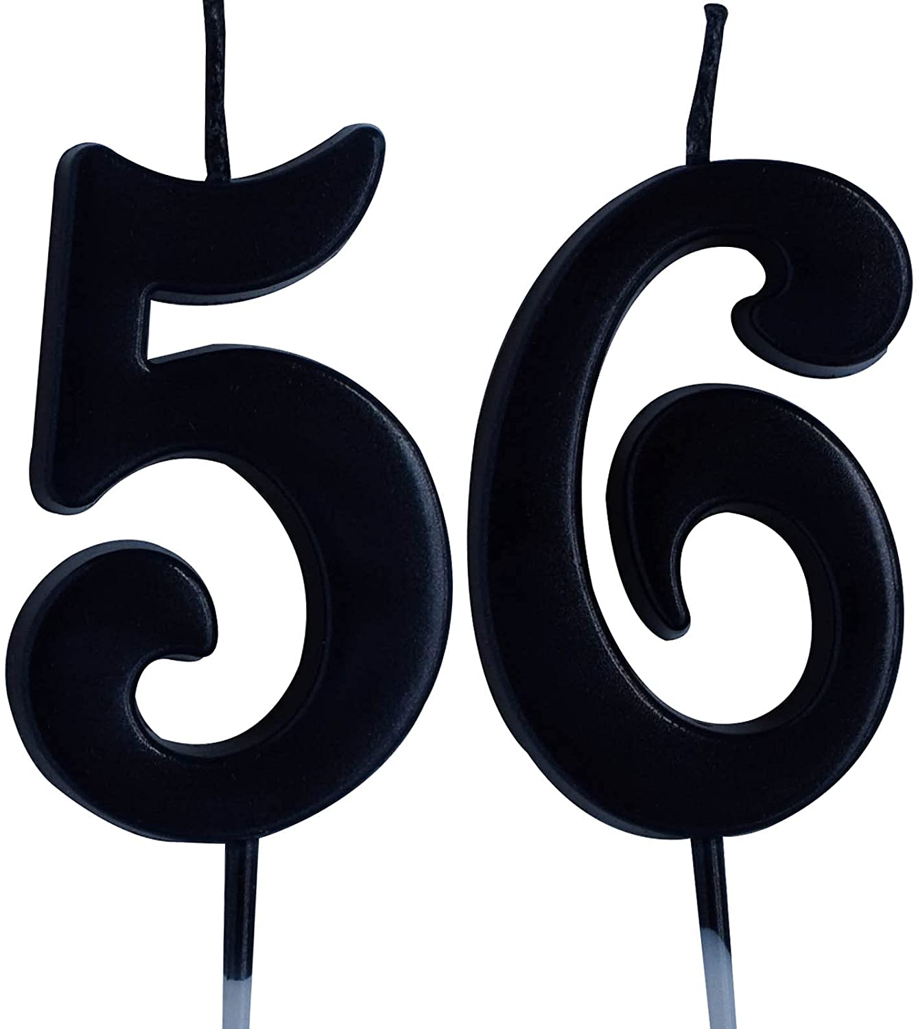 Black 56th Birthday Candle, Number 56 Years Old Candles Cake Topper, Woman Or Man Party Decorations, Supplies