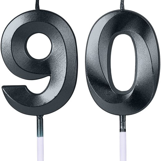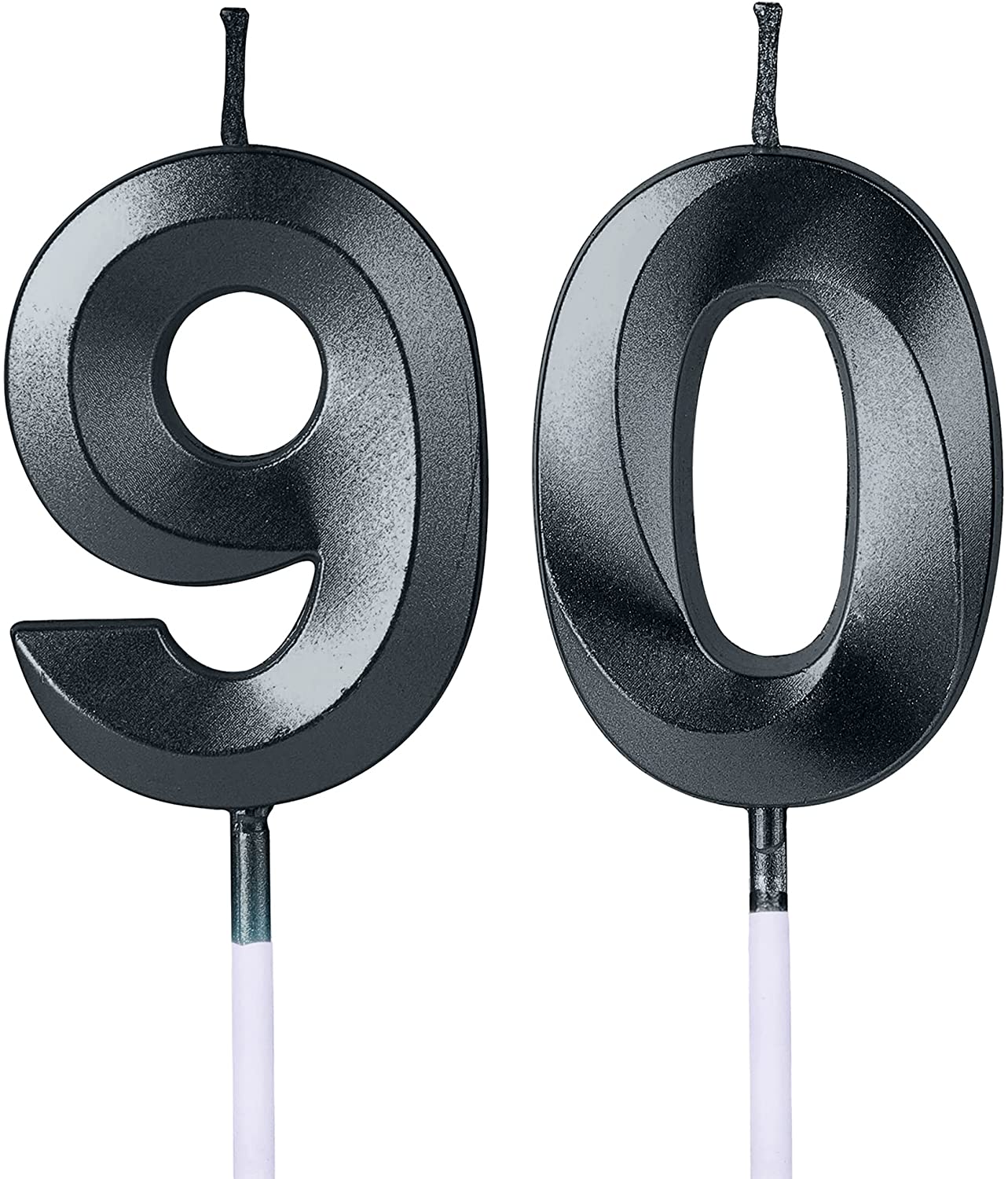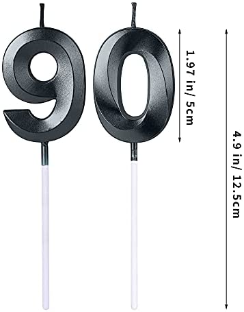 Black 90th Birthday Candles for Cakes, Number 90 9 Glitter Candle Cake Topper for Party Anniversary Wedding Celebration Decoration