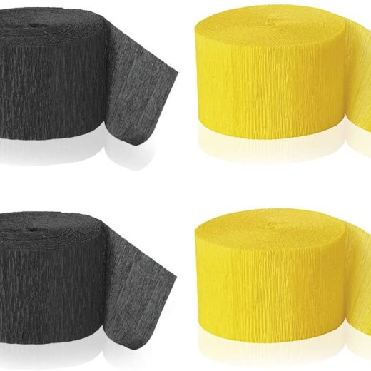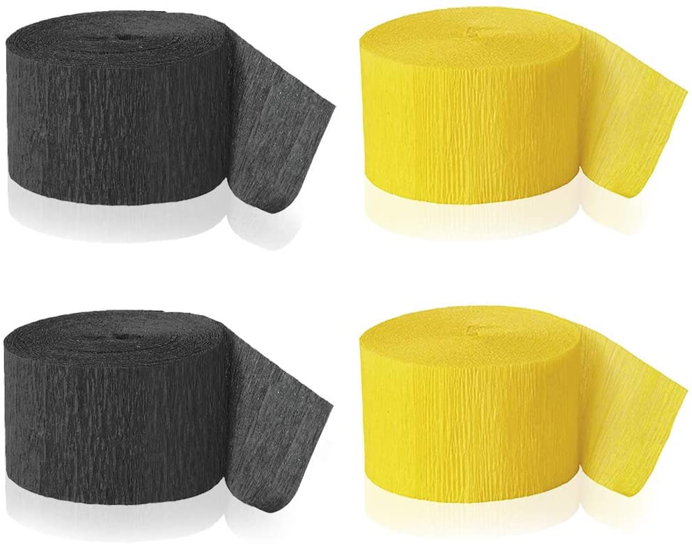 Black and Yellow Gold Crepe Paper Streamers (2 Rolls Each Color) Made in USA