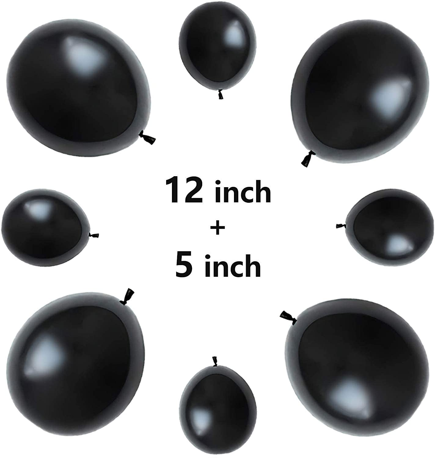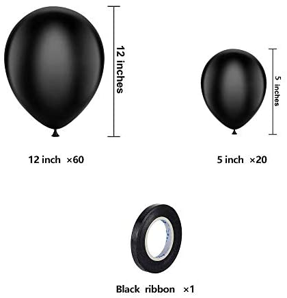 Safe To Use: The black balloons are made from natural durable latex material, with high quality, non-toxic, non-odor and safe for kids.The balloons are thick enough so it would not easy to explode. Excellent Quality: The black balloons can be filled with both air and helium,because of the high-quality materials,you can even prepare the party one day in advance. You just need tie them and put them into anywhere you want. Widely Applicable:This black balloons are great for black theme, wedding, birthday party, backdrop decorations, holiday celebration or other party decorations. Value Combination: The black balloons including 60pcs 12-inch black balloons, 20pcs 5-inch black balloons and a black ribbon.Balloons of different sizes will make your party more special. After-Sales Service: We are very confident with the quality of this black balloons, Upon purchasing this product, you are covered with 100% money back guarantee if youre not satisfied.