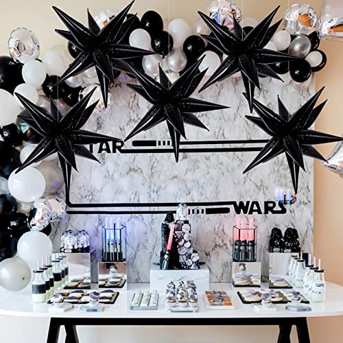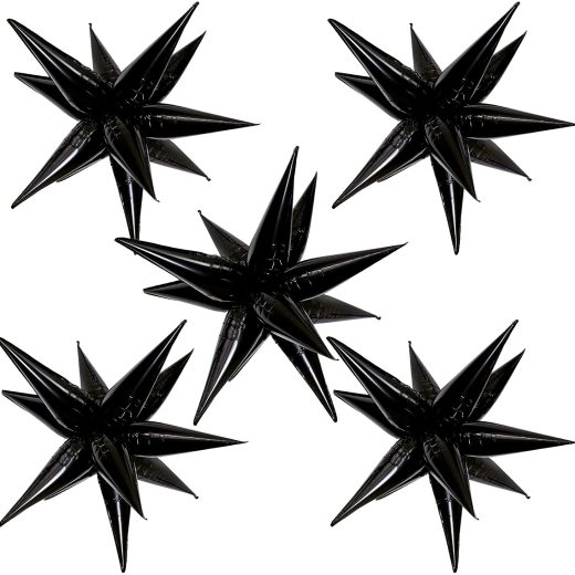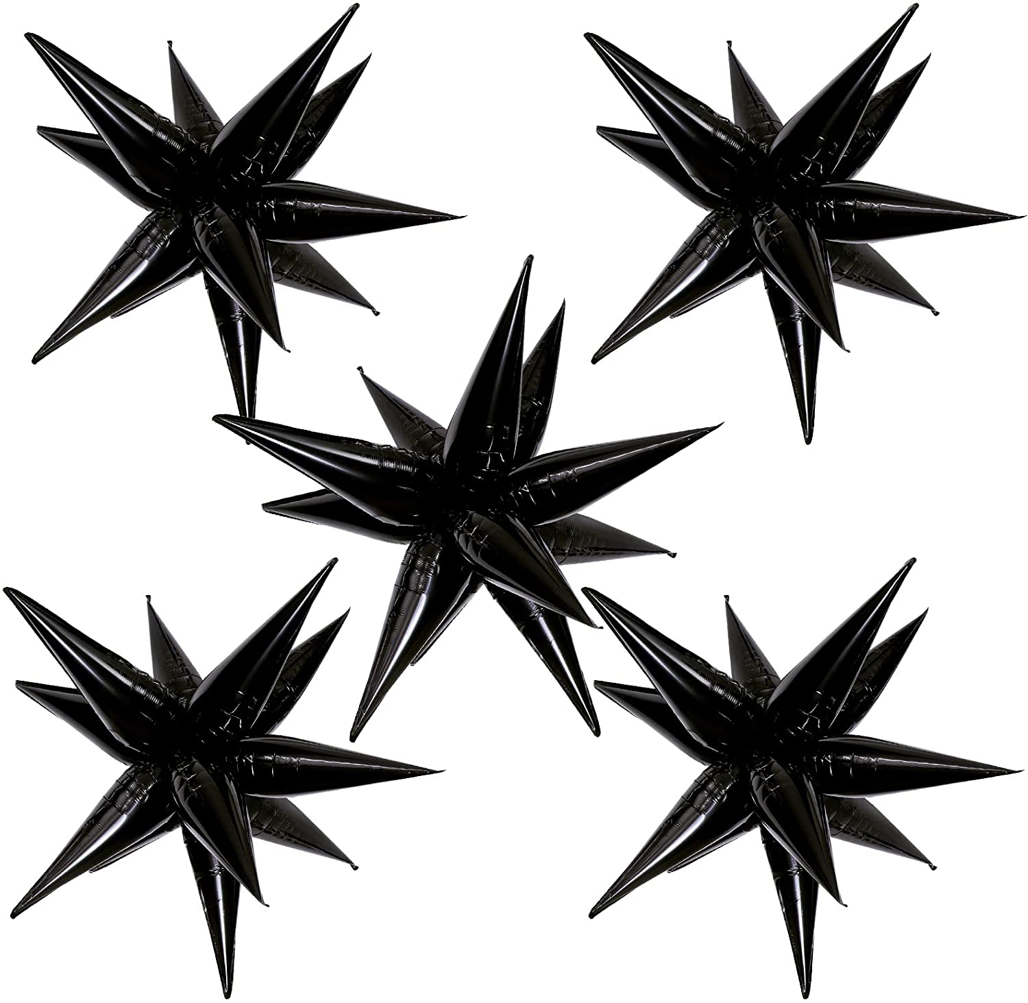 Black Explosion Star Balloons Christmas Foil Cone Mylar Starburst Balloons 60pcs Point Star Balloons Party Supplies Decorations for Birthday Wedding New Years Backdrop