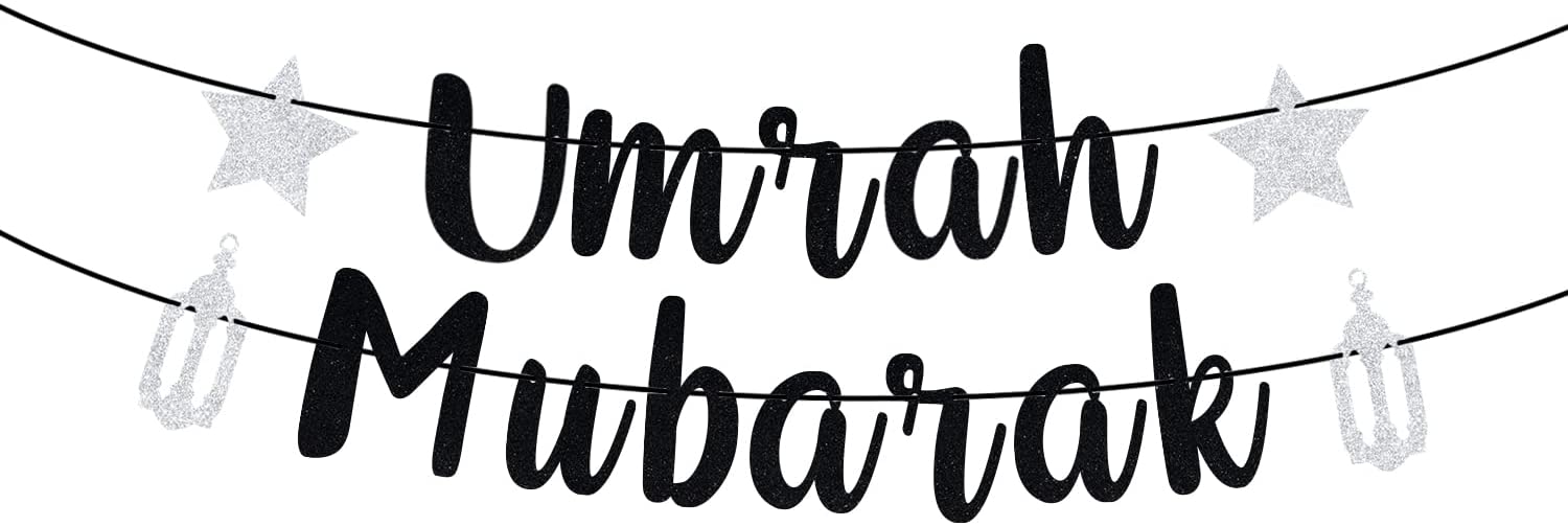 Be the first to review “Black Glitter Umrah Mubarak Banner – Eid Mubarak Celebration Decorations for Muslim, Muslim Ramadan Party Supplies” Cancel reply