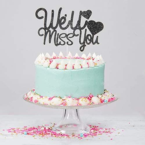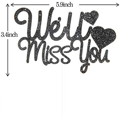 Black Glitter Well Miss You Cake Topper for Happy Retirement , Job Change , Farewell Party , Graduation , Going Away Party Decoration Supplies