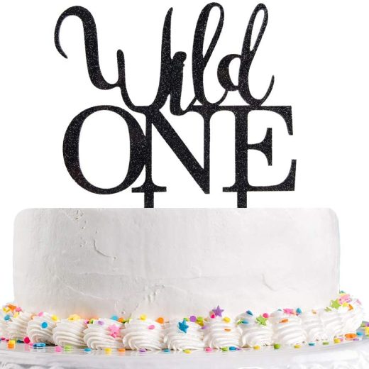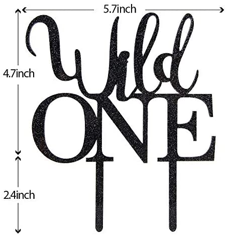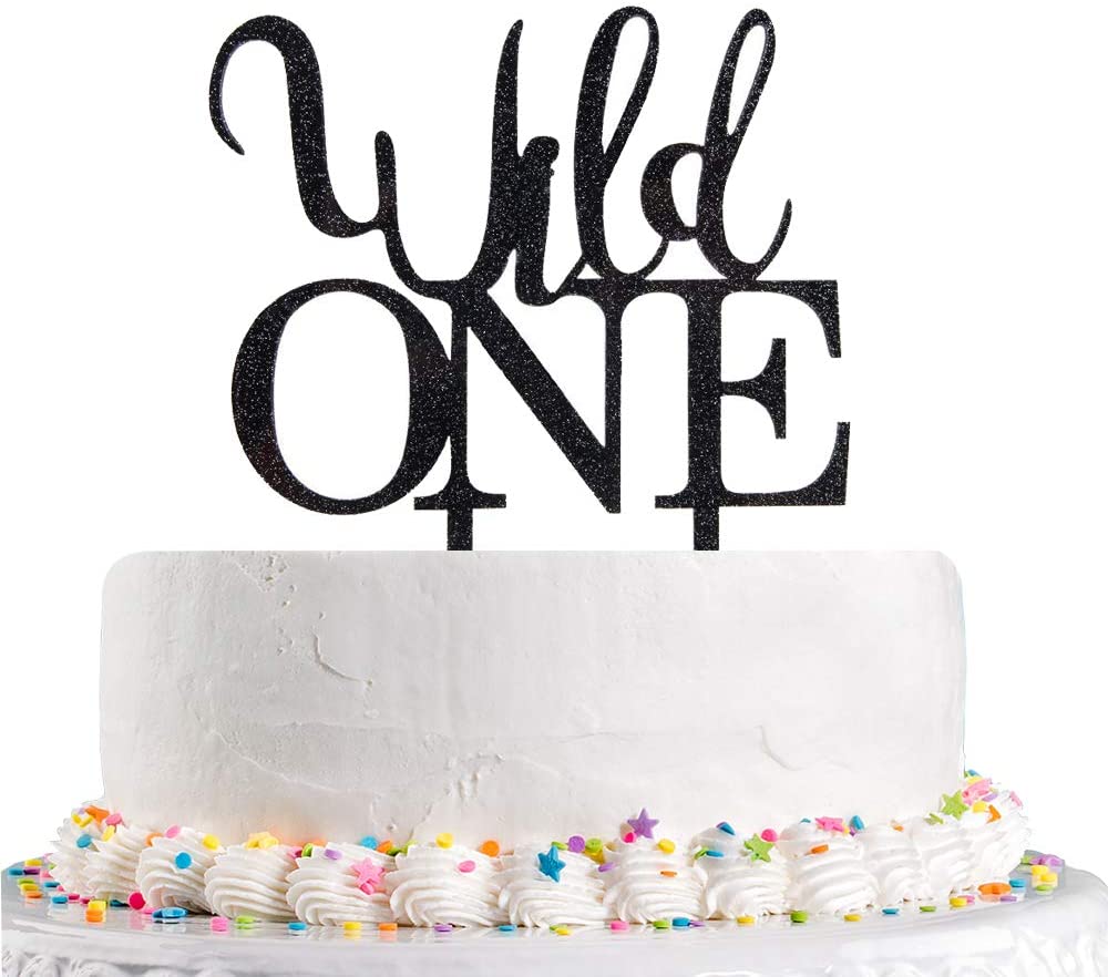 Black Glitter Wild One Cake Topper Baby 1st Birthday,Baby Shower,Boy or Girl Birthday One Theme Party Decorations(Acrylic)