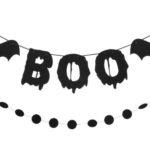 What you will get: 1Pcs Black Glittery Boo Black Bat Banner,1Pcs Black Glittery Circle Dots Garland,Glittery material adds a high-end feel to the party,Perfect for Halloween Party Decoration,Worth buying it!! Boo Garland: Perfect for Halloween party decoration,most atmosphere for scary scenes,Black Glittery Boo Bat Banner for decorative use in Halloween party,Place on back yards,doors,windows,overhangs,branch,gates and so on. Banner Size: Letter length approx is 6.2(16cm).Black glittery paper circle dot banners diameter: 2inch, in total 25pcs Circle dots. High quality ECO-friendly paper,just a little diy,very easy. Perfect for hunging from branches and ceilings, or open against a wall, hanging up dessert tables, backdrops, and the overall party space,the adornment of the integral collocation of color is also very perfect place you want to decorate. Design: High Quality Material,Meet your quality needs,Our product design will highlight your gathering,And your satisfaction is our pleasure.
