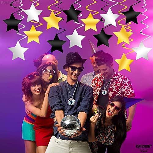 Black, Gold and Silver Star Hanging Swirls – Pack of 30, No DIY | Black and Gold Party Decorations, Hollywood Party Decorations | Black, Gold Swirls for Graduation Decorations, Retirement Decorations