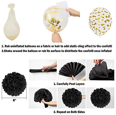 Perfect Kit – This black and gold party decorations includes: 1 set HAPPY BIRTHDAY banner, 18 black/gold star foil balloons(2Pcs), 12 gold confetti balloons(5Pcs), 12gold/black/white balloons(21Pcs), 6Pcs black/gold paper pom poms, 1pcs gold metallic tinsel fringe curtains(2m*1m), 2pcs silver ribbons, meet all your rose gold party decorations ideas. Safe Material – All the black and gold balloons in this birthday decorations kit are made from natural latex or high quality foil, non-toxic, and every balloons have been rigorously tested and selected manually. The paper pom poms are also made of premium paper materials, safe to be used for children. No matter what age, create a dreamy and unforgettable black gold birthday party for him, men and women. Occasions – The black and gold decorations kit not only fits for birthday party supplies, like black gold style theme 18th,30th,40th,50th,60th birthday party for men women, but also for Christmas, New Year, wedding, stage background, bridal shower, baby shower, photo booth, retirement party decorations, graduation decorations. Perfect black and gold party decorations for adding romantic and festive atmosphere. Make Your Party Unforgettable – Our party decorations include balloons, foil curtains, paper flower balls and two balloon accessories. Thay can help you build a beautiful balloon arch, enrich your party decorations, and create an unforgettable memory for you and your friends. Warning – Choking hazard! Children under 8 years old can choke or suffocate on uninflated or broken balloons! Parents supervision required! Keep uninflated balloons from children! Discard broken balloons at once.
