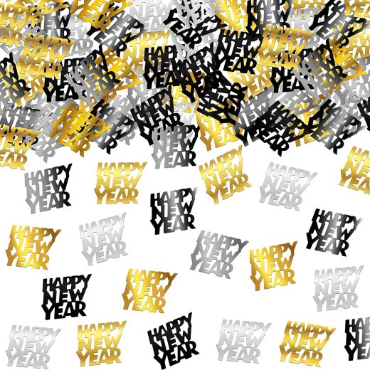 Black, Gold Happy New Year Confetti – 1.8 Ounce | Silver and Black New Years Confetti 2022 for New Years Eve Party Supplies 2022 | Happy New Year Decorations 2022 | NYE 2022 Confetti for Table Decor