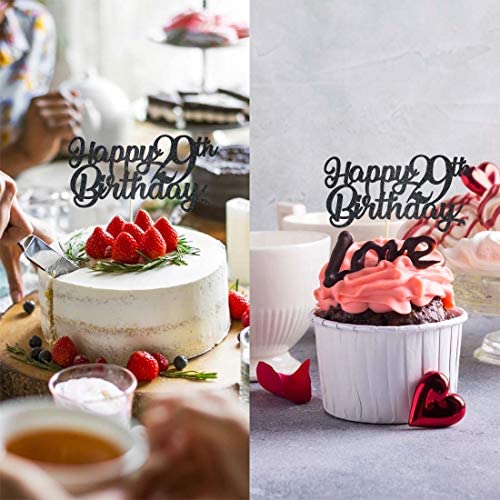 Black Happy 29th Birthday Cake Topper, Black Glitter Cheers To 29 Years Party Cakes Decorations, Supply