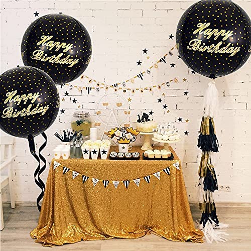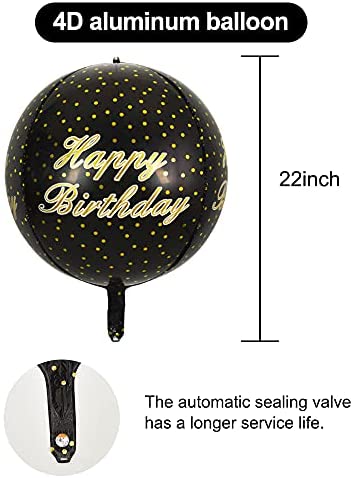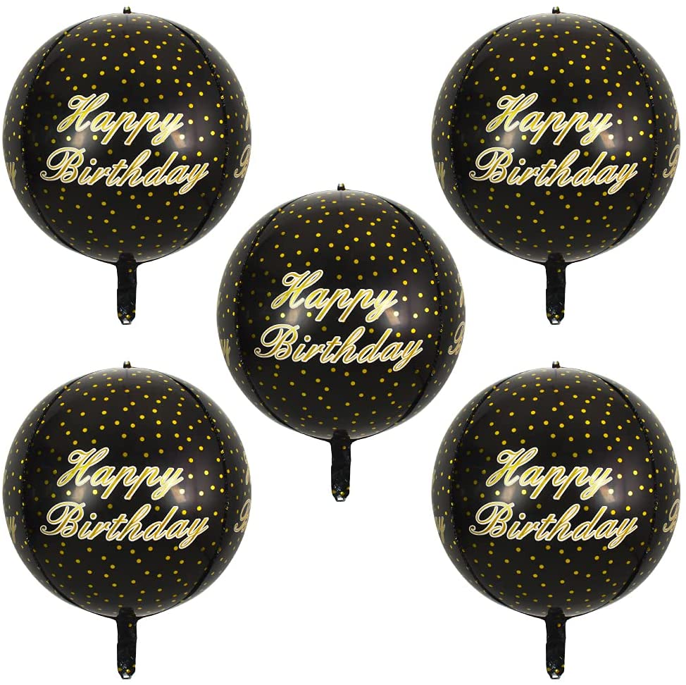 Black Happy Birthday Aluminum Foil 4D Polka Balloon 22 inch Large Round Shape Helium Foil Balloons Floating Mylar Balloon Party Decoration Supplies for Birthday Party Anniversary Celebration Wedding Baby Shower Decoration Halloween Supplies (5 Pcs)