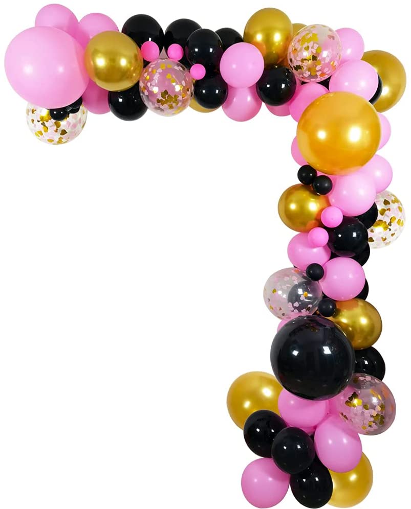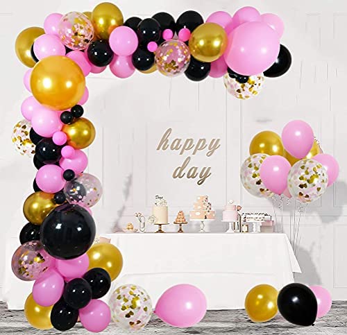 Black Pink and Gold Balloons Ladies Party Decorations, 100PCS Thick Latex Balloons 18