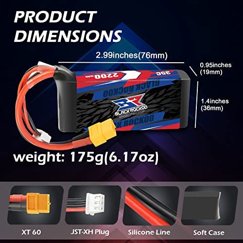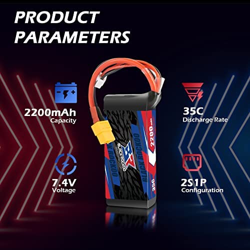 Excellent PerformanceBlack Rockoo 7.4V battery with 35C(Max 70C) discharge rate can strongly power your RC car, support longer running time and >200 cycle life
