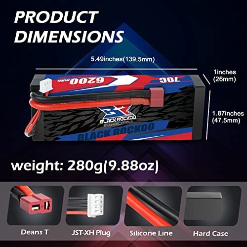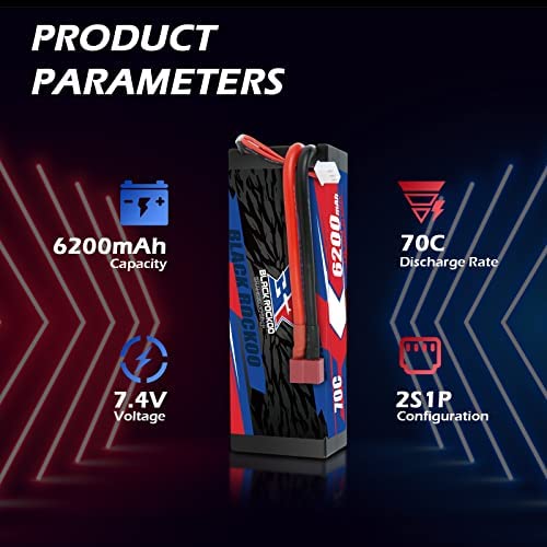 Excellent PerformanceBlack Rockoo 7.4V battery with 70C(Max 140C) discharge rate can strongly power your RC car, support longer running time and >200 cycle life