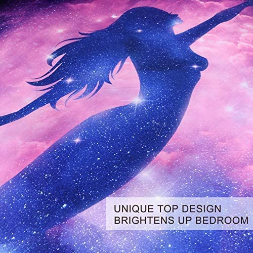 BlessLiving Mermaid Bed Set Mermaid Twin Bedding Sets for Kids Little Girls Comforter Cover 3 Piece Pink Purple Blue Psychedelic Galaxy Duvet Cover