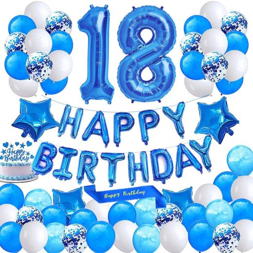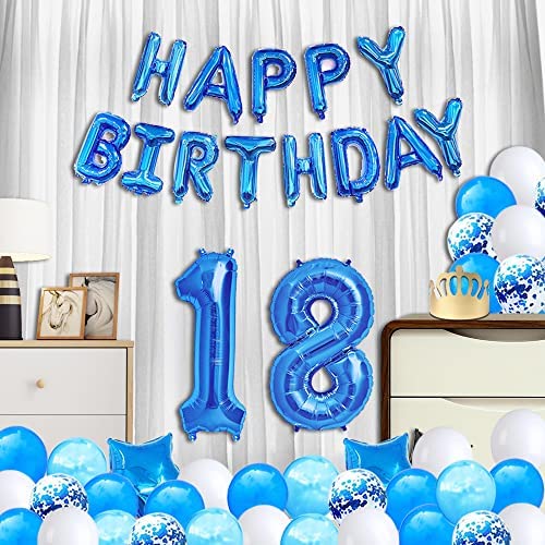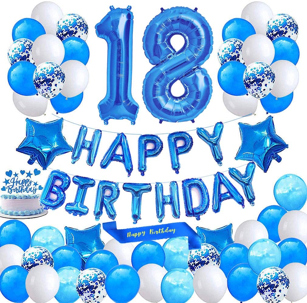 Blue 18th Birthday Decoration Happy Birthday Banner Number 18 Balloons Blue Happy Birthday Sash Cake Topper Latex Confetti Balloons for Boys Men 18 and 81 Years Old Birthday Party supplies Minhero