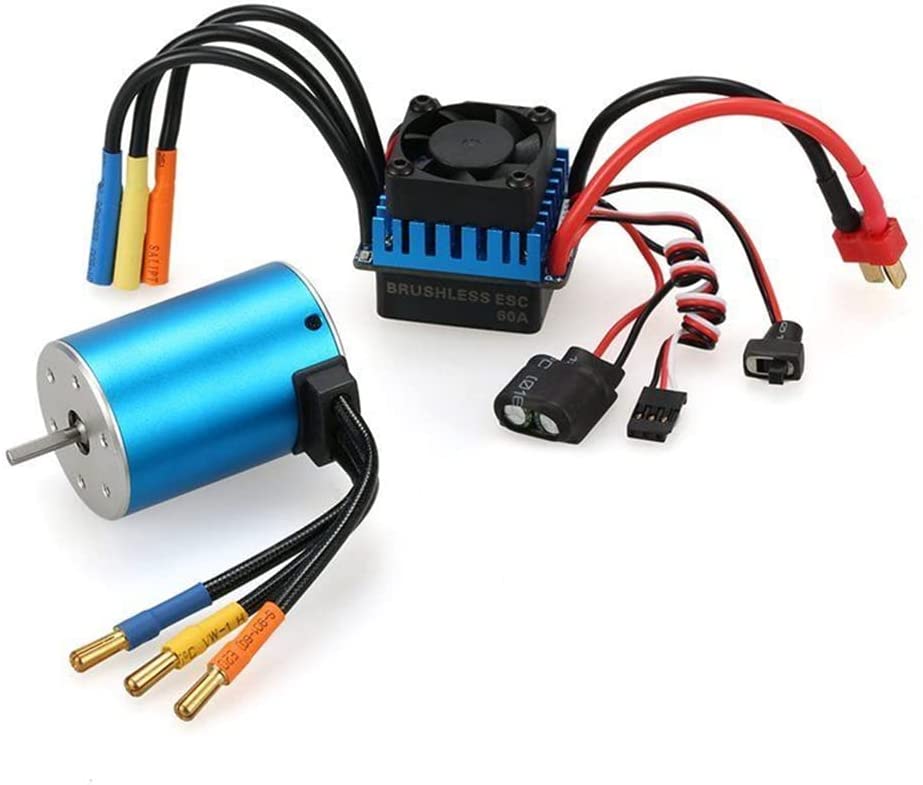 Blue 3650 2300KV Brushless Motor Shaft 3.175mm with Brushless 60A ESC for 1/10 RC Car