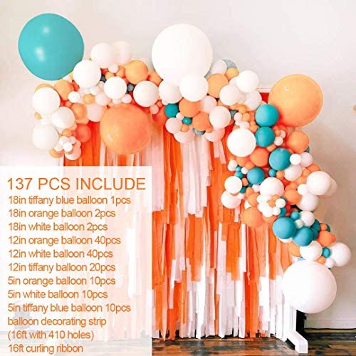 Blue and Orange Balloon Arch Garland Kit-Orange Balloon White Balloon Tiffany Blue Balloon 137Pcs for Baby Birthday,Gender Reveal,Baby Shower,Wedding,Engagement,Christmas and Welcome Party Decoration.