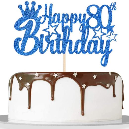 Blue Glitter Happy 80th Birthday Cake Topper for Cheers to 80 Years/Men Queens Birthday 80th Years Blessed Anniversary Party Decorations Supplies – High Grade Color