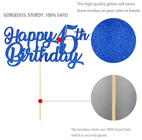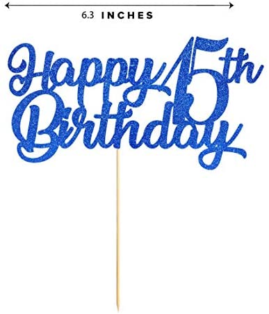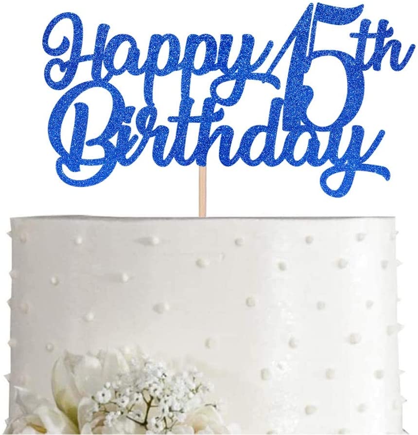 Blue Happy 15th Birthday Cake Topper, Royal Blue Glitter Cheers To 15 Years Party Cake Decorations, Supply