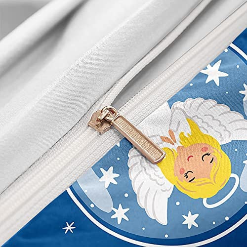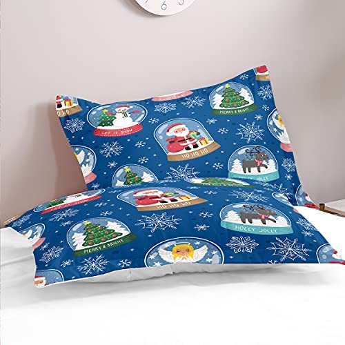 Blue, Snowflake, Cartoon Christmas Digital Printing,Three Piece Childrens Quilt Cover, Pillow Case,Microfiber Home Textile Bedroom Bedding, Hotel Dormitory Christmas Theme Series (Full (200×230))