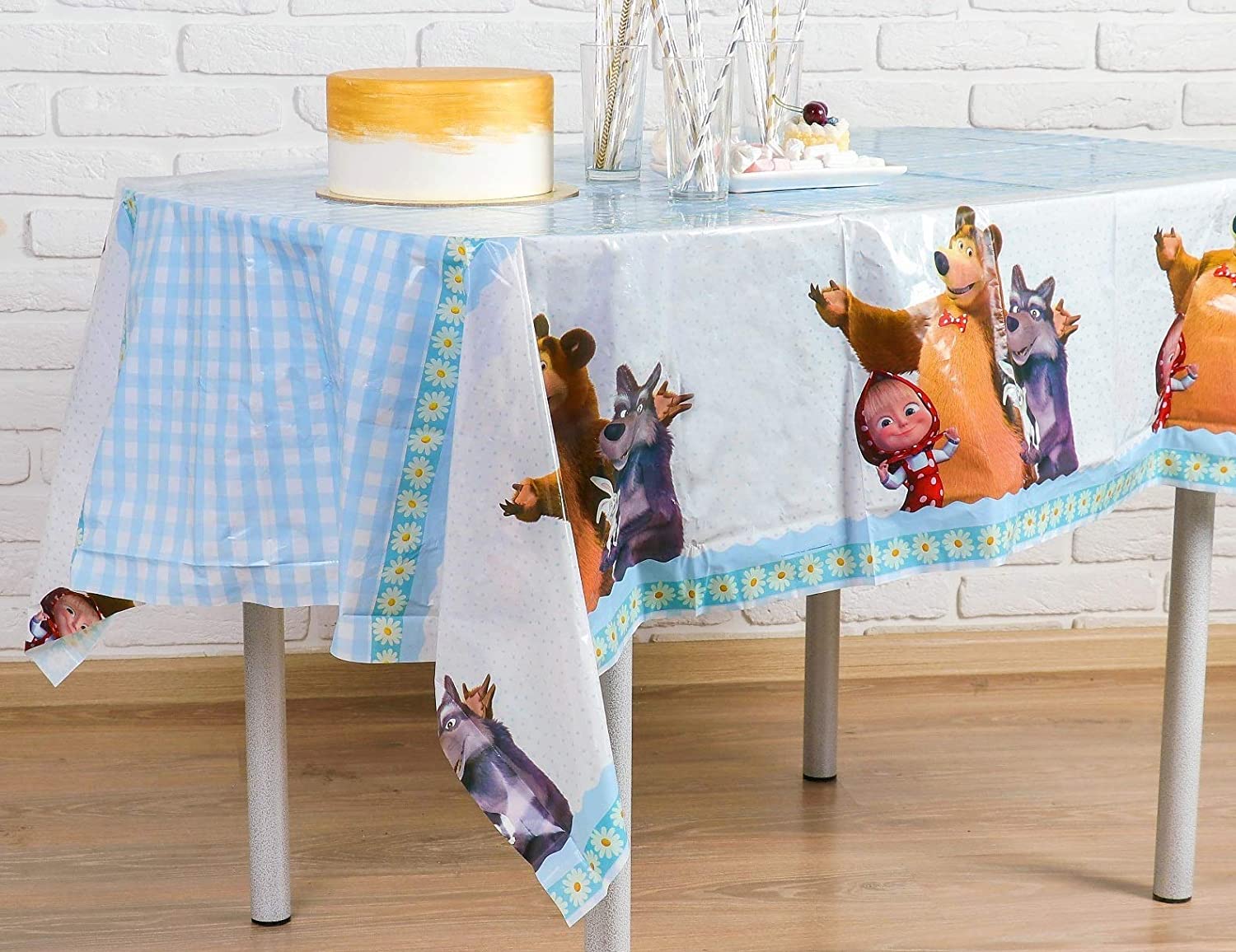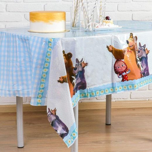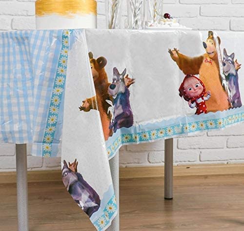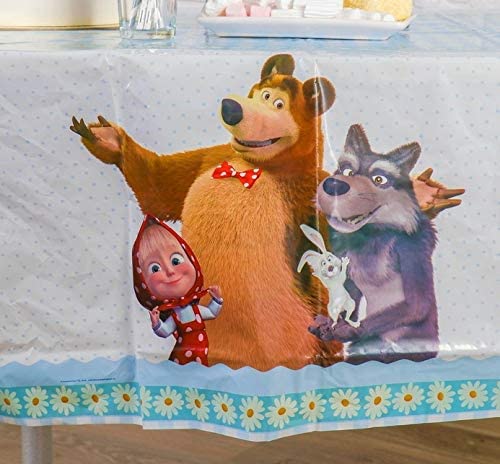 Blue Tablecloths Polyethylene Masha and the Bear 70inch Birthday Party Favors Supplies