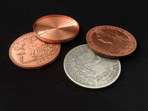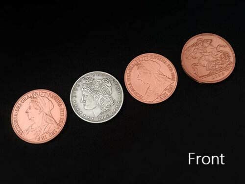 A Morgan Dollar and an Ancient Copper Coin transposes each other from one hand to the other. A Visual trick, without angles and close to Perfection. With this gimmick you can do vanishes and transpositions. Many other routines are possible. This is intended for the advanced coinworker. Compared with other sun and moon coins in market, this shell can cover all three coins so more routines are possible. Includes a morgan dollar, a Queen Victoria Ancient Coin (3.8cm), a double-sided morgan dollar/ancient coin insert, an Expanded Queen Victoria Ancient Shell (Tail) and instructional video.