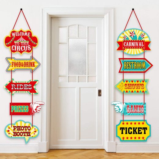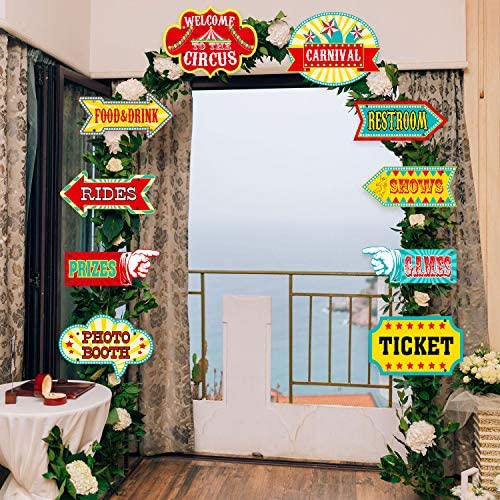 Blulu Carnival Decorations, Laminated Circus Carnival Signs Circus Theme Party Signs Carnival Party Supply Decor Paper Cutouts with 2 Ribbons and Glue Point Dots (Style A)