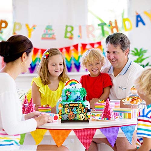 Blulu Safari Jungle Animals Party Signs Jungle Theme Party Table Decoration Wild Zoo Animals Birthday Party Baby Shower Supplies Safari Jungle Lets Get Wild Table Favors, 7.87 x 4.72 Inch, 2 Pieces