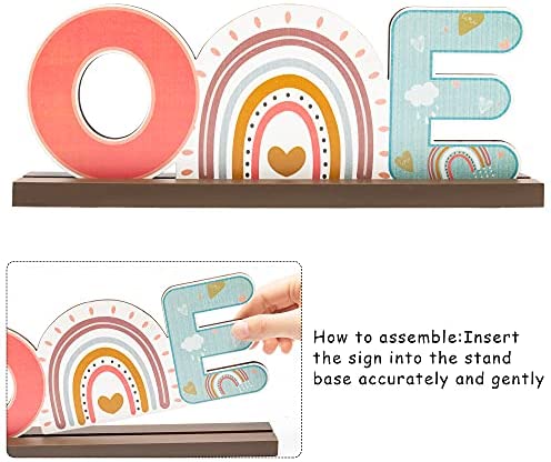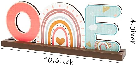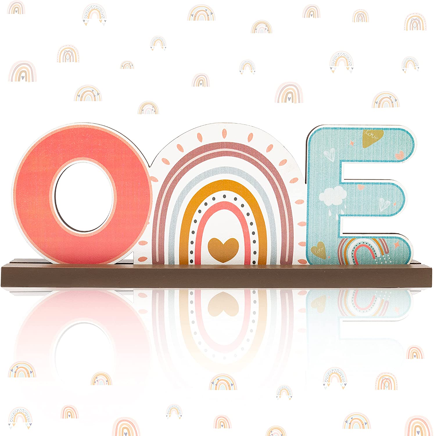 Bohemian Rainbow ONE Letter Sign Wooden Centerpiece, Rainbow First Birthday Baby Shower Party Table Deciration, Baby Girls One Year Old Birthday Party Decoration Ornament Photo Props