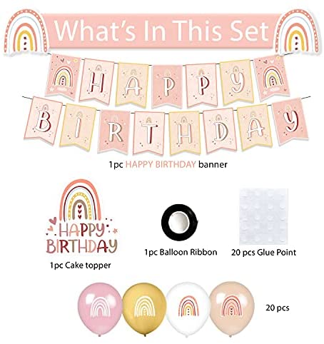 Boho Rainbow Party Decorations, Boho Rainbow Birthday Decorations Set with a Happy Birthday Banner, Boho Rainbow Cake Topper, Balloons for Kids Girl Muted Bohemian Baby Shower Gender Reveal Party
