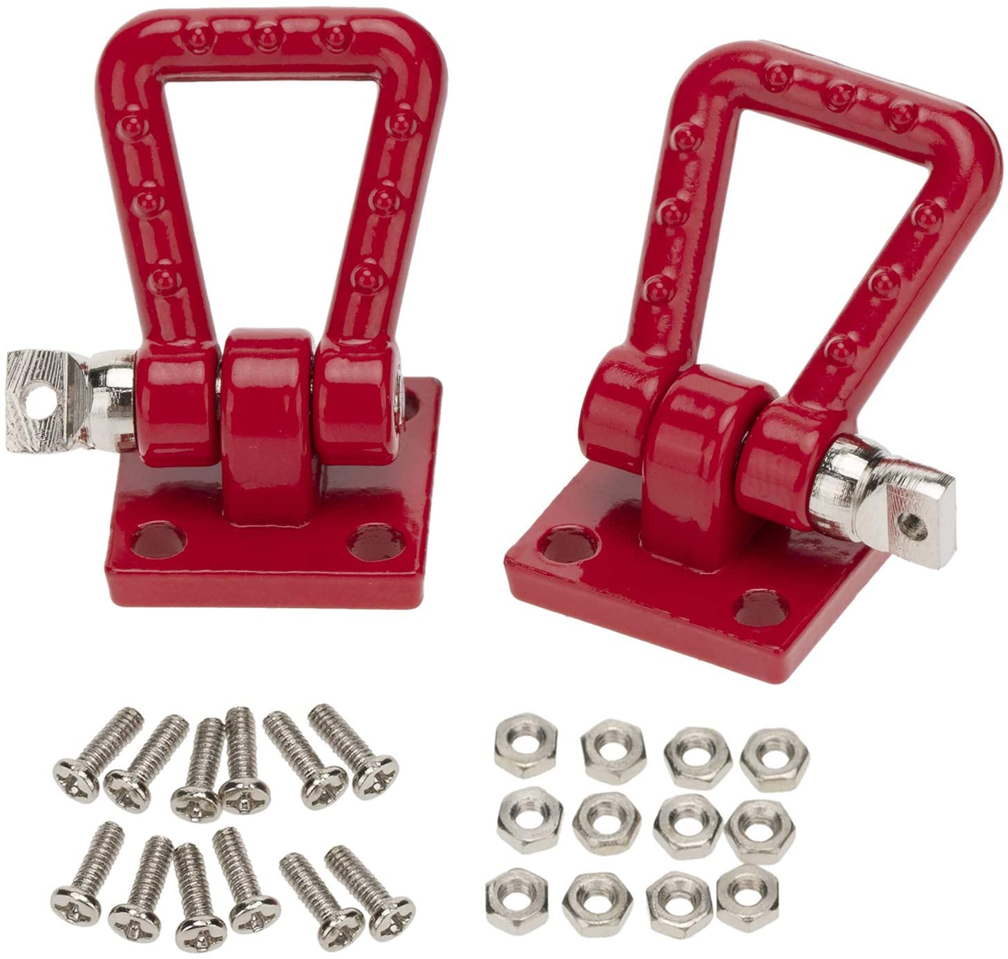 Boliduo 1:10 Scale Climbing Trailer Hooks Metal Tow Hook Buckle Winch Shackles Accessory for 1/10 RC Crawler Truck Axial SCX10 D90 TRX-4 (Red)