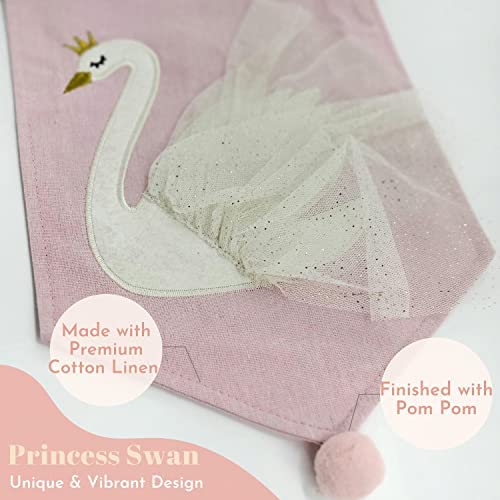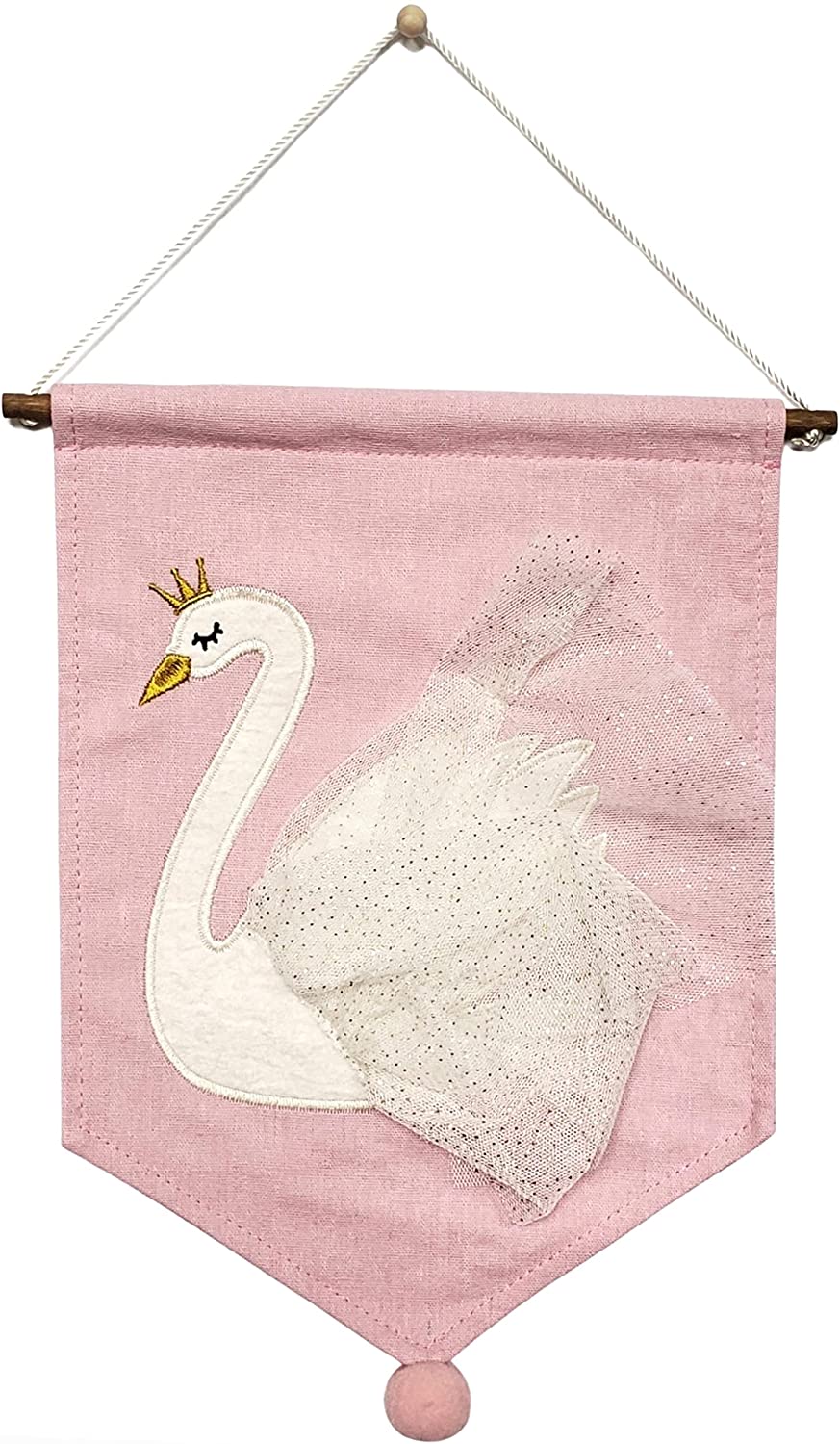 Bon et Beau Princess Swan Embroidered Canvas Banner u2013 Wall Decor for Girls Bedroom, Playroom and Baby Nursery (Princess Swan)
