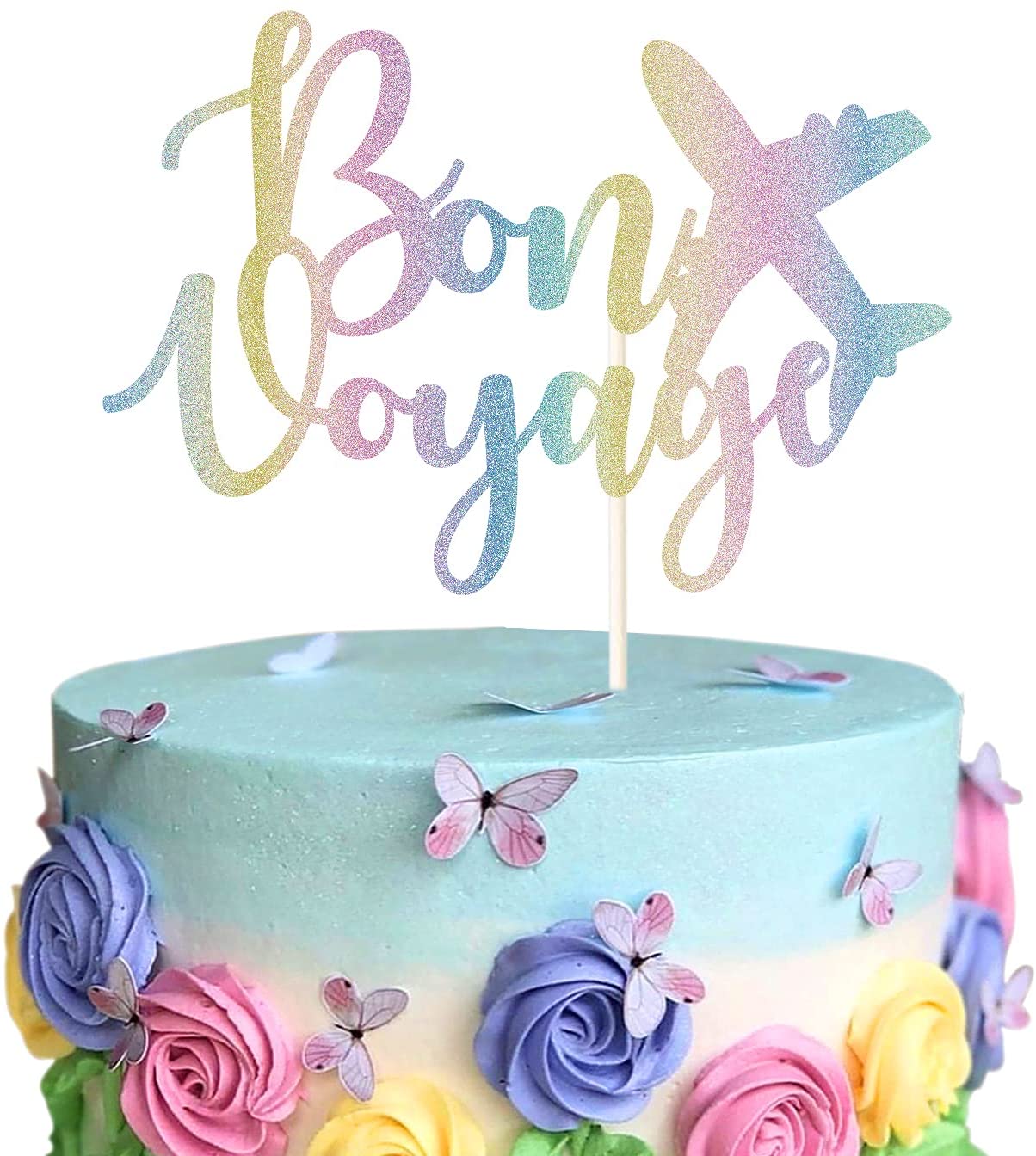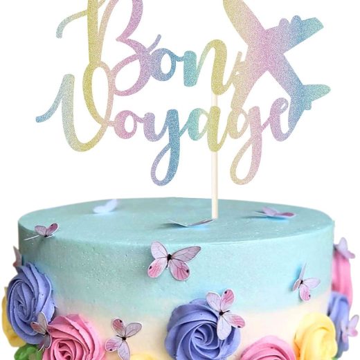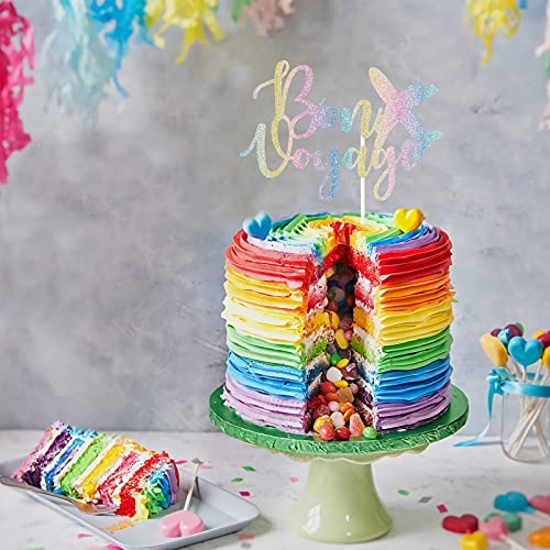 Bon Voyage Cake Topper – Colorful Glitter Officially Retired Cake Decor-Going Away, Moving Away, Travel,Retirement,Farewell Party Decoration Supplies