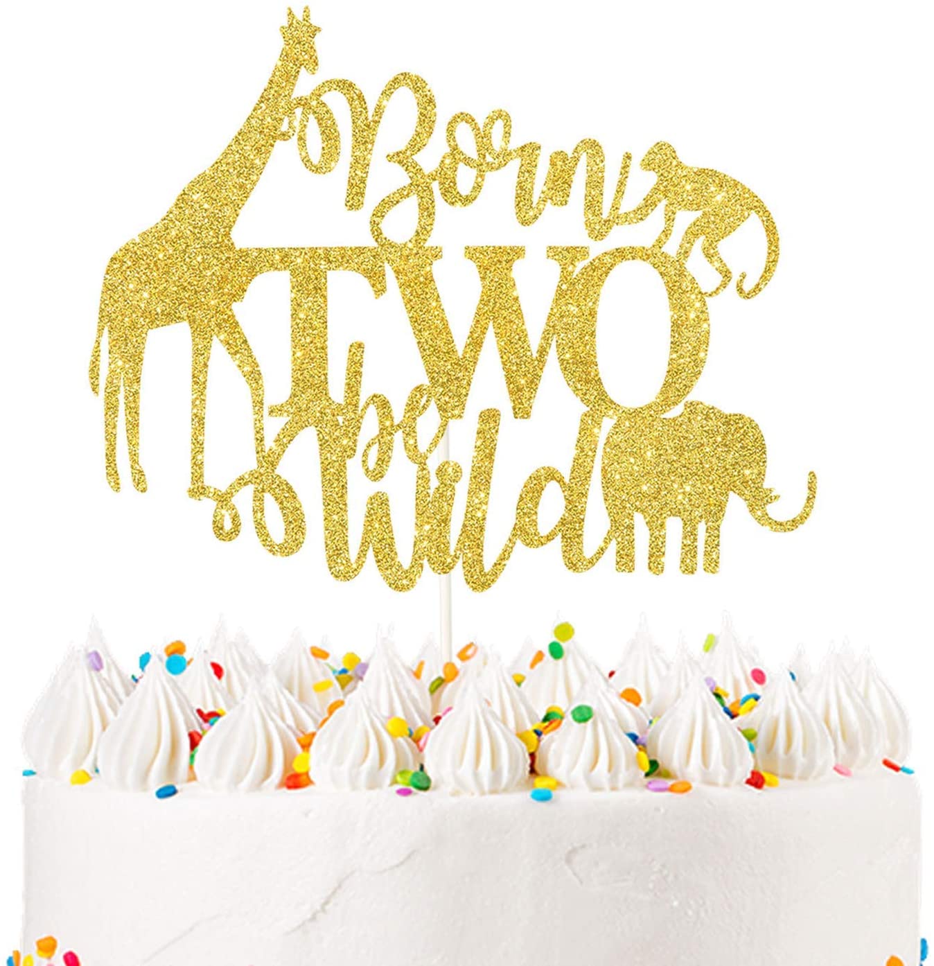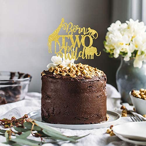 Born Two Be Wild Cake Topper, Gold Glitter Twins Cake Decor, Twins Baby Shower Supplies Safari Woodland Themed Twins 1st Birthday Party Decorations