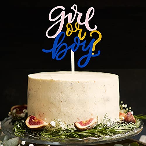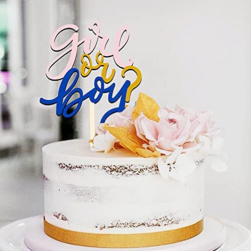 Boy or Girl Cake Topper-Navy and Blush Gender Reveal Cake Topper,Wood Baby Cake Topper for Baby Shower Party Decorations,Navy and Pink Gender Reveal Decorations