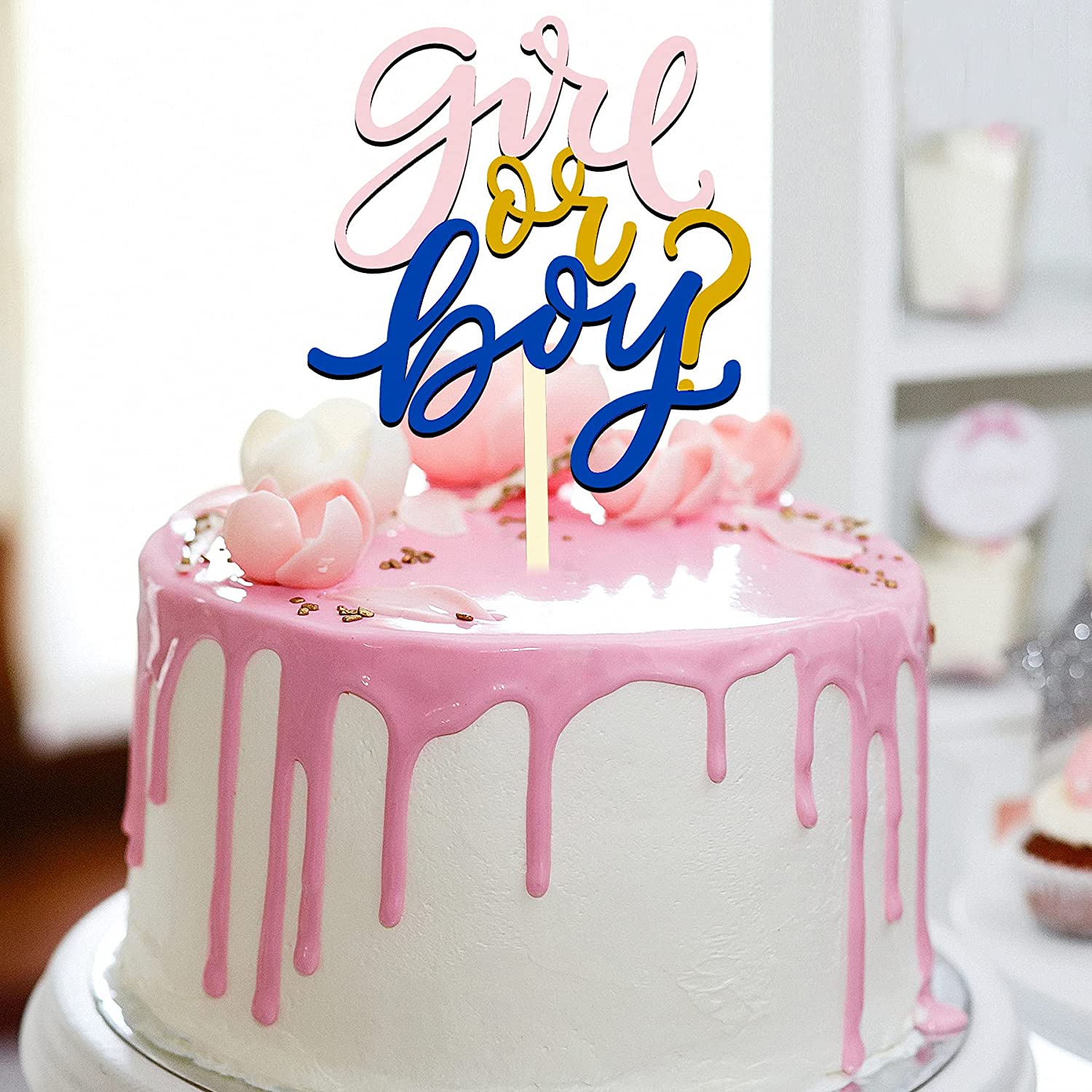 Boy or Girl Cake Topper-Navy and Blush Gender Reveal Cake Topper,Wood Baby Cake Topper for Baby Shower Party Decorations, Navy and Pink Gender Reveal Decorations